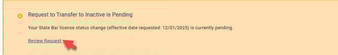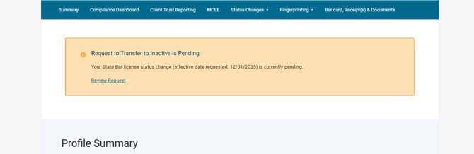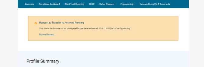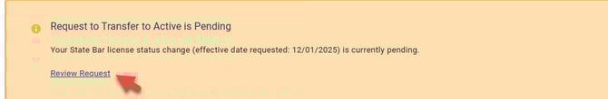 - From your My State Bar Profile Summary page: Click “Review Request” in the pending request notification banner at the top of your My State Bar Profile.