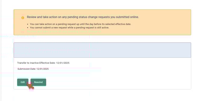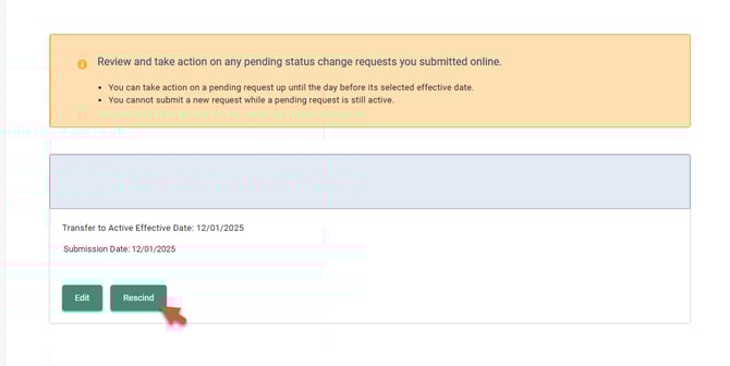 Note: Requests can be rescinded up to one day before the effective date. If the request was submitted on the same day as its effective date, you have until the end of that day to rescind your pending request.