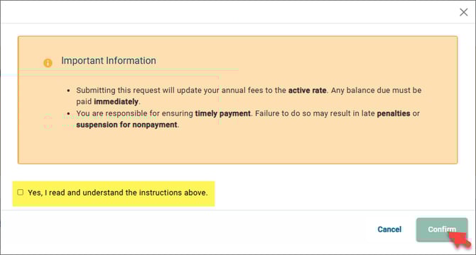 If applicable, once your transfer to active request has been processed and your annual fees have been adjusted, payment will be expected immediately.
