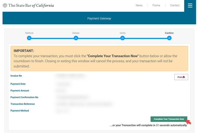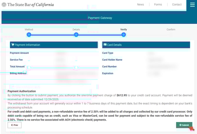 Note: Before submitting your payment, log out of any other My State Bar Profile sessions and proceed only when you are signed in to a single session.