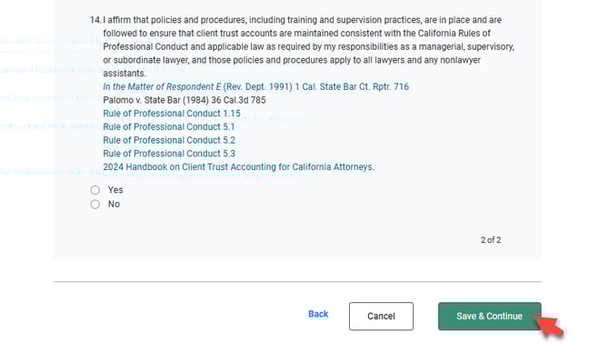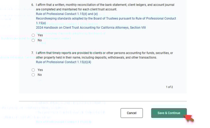 - Confirming whether you were responsible for client trust funds during the reporting period