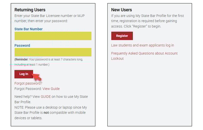 Forgot your password? View this guide. Do not remember your bar number? View this guide.