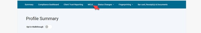 From the main navigation bar at the top of your My State Bar Profile Summary page, select “MCLE.”