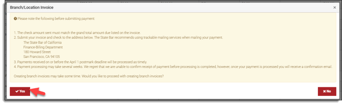 Next, the Invoice Notice pop-up will appear. Please take a moment to read the information presented and then click "Yes" to proceed.